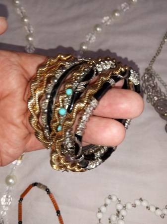 make offer or buy it all for $60 some are lightweight others are metallic various necklaces about 4 rings wrists jewelry no real silver or gold items $ cash only pickup in San Jose 95118