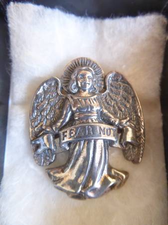 J.H. Breakell's inspirational Fear Not Angel pin is a reminder that strength lies within. Made in Sterling Silver with an oxidized finish, this pin measures 1-1/2" high x 1-1/4" wide. This has the...