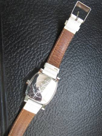 There are scratches on the back (which you don't see when worn) but otherwise it's in very nice shape.