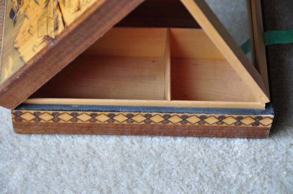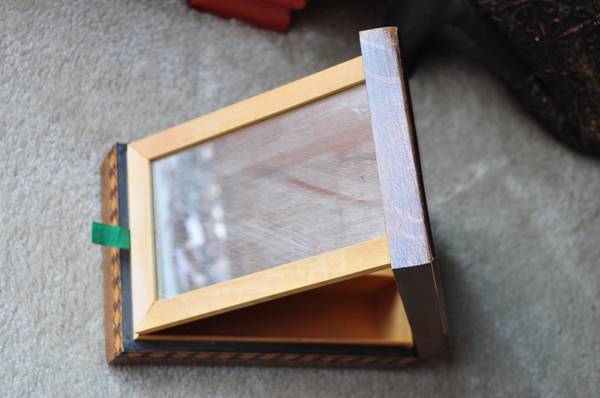 ITEM LOCATED IN SAN JOSE. Jewelry box with folding mirror inside. It is 9-1/2" x 6-1/8" x 2-3/4" in size. To get reply text me at . Email replies end up in spam folder. If you do decide to email,...