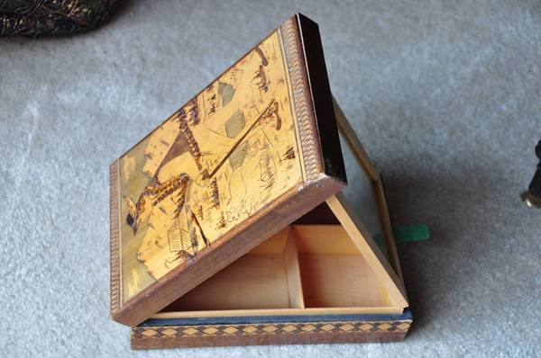Wooden jewelry chest with engraved pyrography artwork painting -...