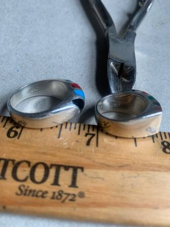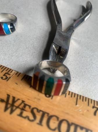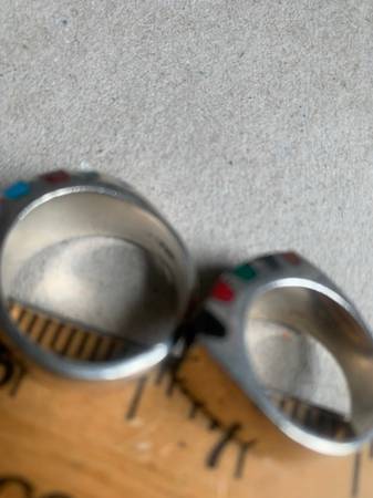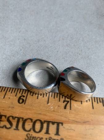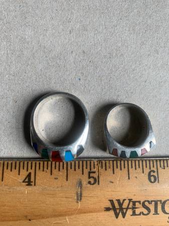 For sale Sold as a pair Two authentic silver and stone rings I’ve been wearing the men’s as a pinky ring Artisan made from Taxco Mexico Curbside pick up in Saratoga Cash only No trolls Thank you