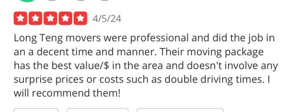 Long Teng Moving LLC is professional moving company for small or big families or companies. Great at packaging and pianoes,fast service, give you the best offer in bay area.