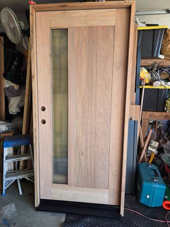 Custom front door. Solid spanish teak wood. 36 x 80 fully framed ready for installation. I have other doors available if you do not like this style. Please serious inquiries only.