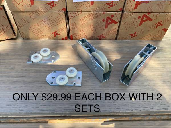 I have many brand new boxes of HAFELE woodflex 80 set 403.50.941 sliding door hardware available for sale ONLY $29 so please see pictures for more information. Thanks