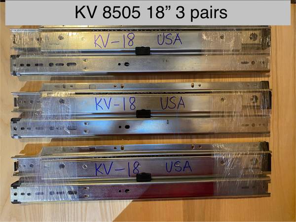 I have many set of Accuride, KV, Blum Drawer Slides with bearings and full extension with different sizes available for sale. Please see pictures for details I am only respond emails with phone...