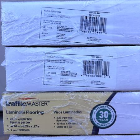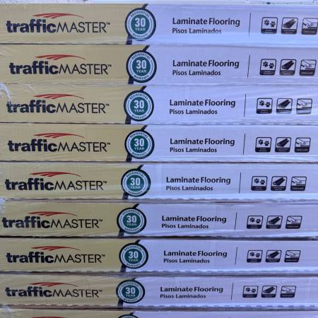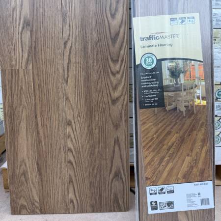 TrafficMaster, Kellum Valley Oak Gunstock Brown , 7 mm x 8.03” W x 47.64” L, Laminate Wood Flooring, 23.91 sf per case Color: Rich “gunstock” brown oak with a semi‑matte finish Material: Gives the...