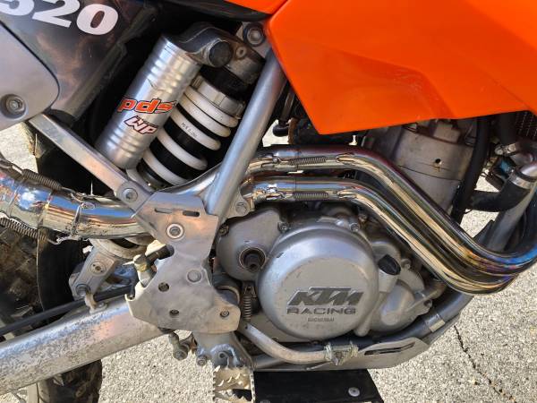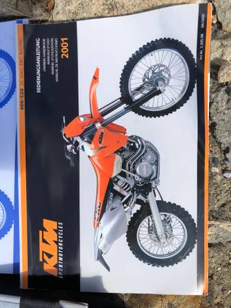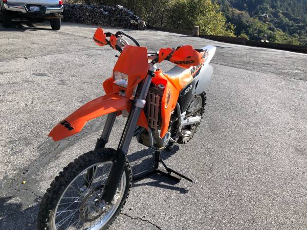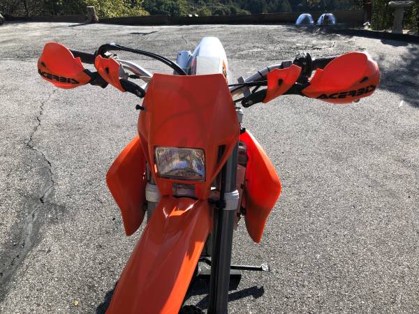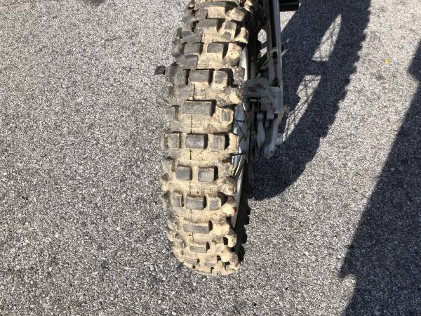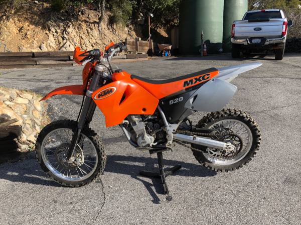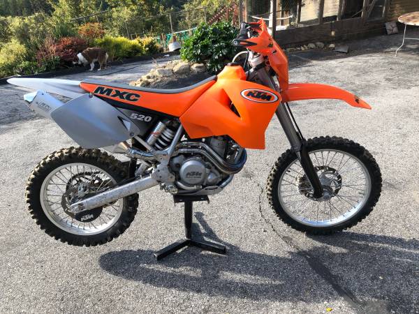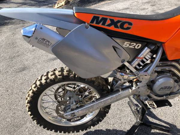 2001 KTM 520 MXC only ridden for 20 hours and then garaged. Like new. Fork protectors, brush guards, 3.5 gallon enduro gas tank Pic of rear tire- this is the original tire!!