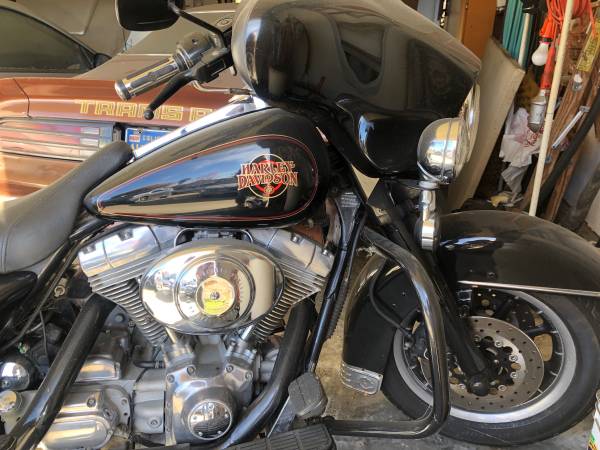 2001 Harley Davidson Electra Glide for sale. $6900 or best offer. Excellent condition. Been garaged. Completely dressed out. Stereo. New motorcycle cover.