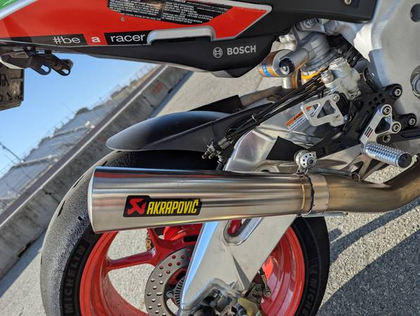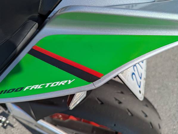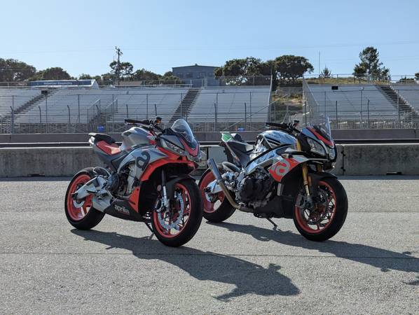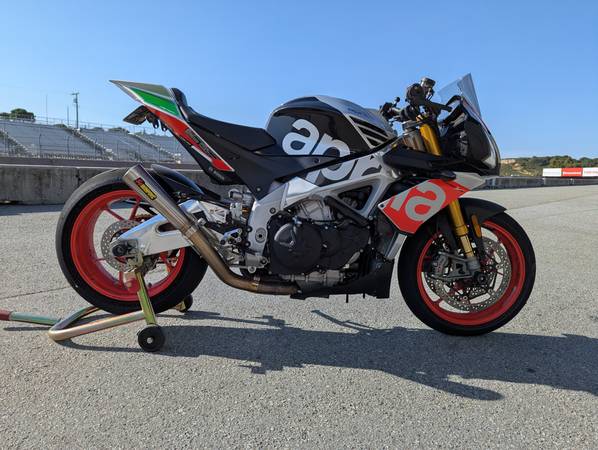 I'm selling my 2017 Aprilia Tuono 1100 Factory as I'm focussing more dirt biking these days. I originally bought it for track riding, but got only 4 days in. It is a phenomenal bike that'll put a mad grin on your face. It has a few nicks and scrapes from previous owners and needed quite a bit of TLC but is mechanically in top shape, see the maintenance section below. The first owner dumped it and it got a salvage title from the insurance.