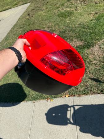 Hat box with lock, great for storing but also very easy to take off and bring inside. Nice cover, side bars, spare rear bar, spare spring, extra seat, the original mirrors (one side has a broken thread so I replaced them), and some spare parts.
