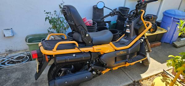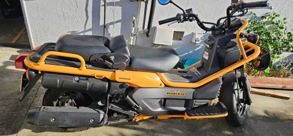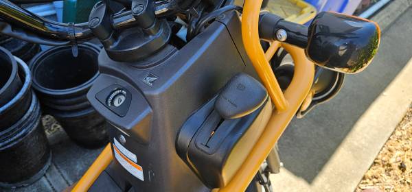 Dual headlights, 250 cc motor, automatic, backrest that folds down if you want a passenger, 70 mpg.