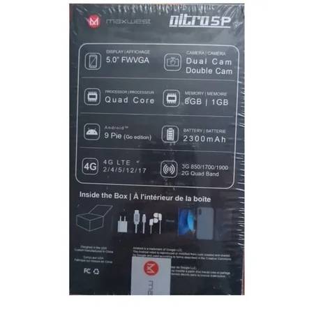 New, in original sealed box. Brand - Maxwest Processor - Quad Core Screen Size: 5 in Camera Resolution: 5.0 MP Connectivity: Bluetooth, Wi-Fi, Micro USB Network Unlocked Model Model: Nitro 5M Phone...