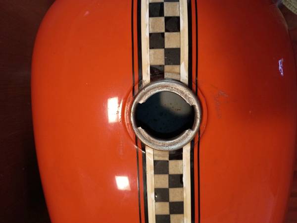 This original-paint gas tank has been sitting on my shelf for decades. Lovely to just look at, but hopefully someone can actually use it.