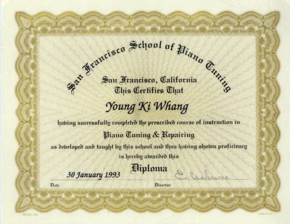 January 30, 1993: Graduated with a Diploma in Piano Tuning and Repair