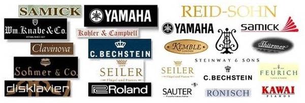 Yamaha, Kawai, Young Chang, Samick, Kimball, Baldwin, Wurlitzer, Steinway & Sons,