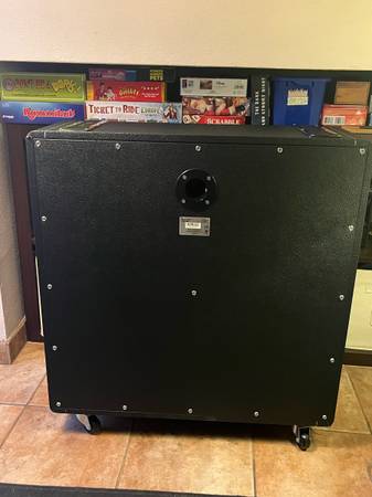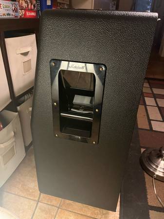 Marshall 1960AX cab with basket weave speaker grill . Cab made in 2018 , but I pulled the 2018 Celestion green backs and put in an older set of Celestion green backs from 2004 that came stock out of a 1960BX cab I had, they sounded much better and I was planning on keeping this cab . Cab and speakers all made in England !! And Cab in amazing condition as u can see from pictures ! Original casters also included !! Marshall cab cover also included !!
