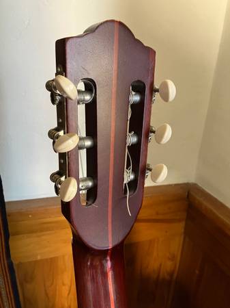 This Guild Mark II has been a joy to own and play over the last 10 years. I’m only selling it because I have a Mark III and simply don’t need both guitars. It’s a super high quality guitar, and while they’re slowly rising in price, the Guild Mark I—IV classical guitars are still “sleepers.” The price belies its high quality. The Mark II has a spruce top, mahogany back and sides, a three piece mahogany neck, and a rosewood bridge, headplate, and fingerboard. The tuners are original, turn smoothly, and stay in tune.