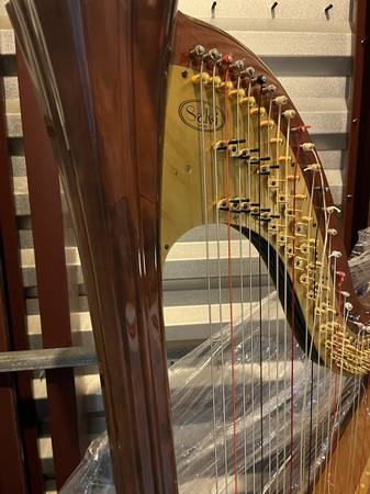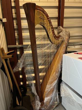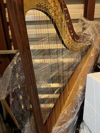 Lovely Daphne 70 concert harp with rich tone and elegant design. Well cared for, in climate-controlled storage. Mechanically sound and structurally solid - just needs a new set of strings to be in top playing shape.