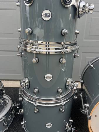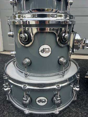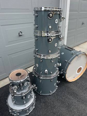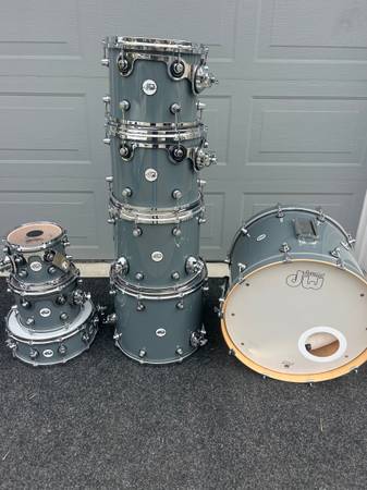 DW Design series 8 pc drum set. Sizes are 8, 10, 12, 13 rack toms. 14, 16 floor toms 14 snare, 22 bass drum. Excellent condition in gray lacquer finish. No trades. Serious only.