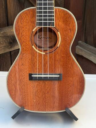 For sale is a Kamoa M5 All Solid Mahogany Ukulele with an Ebony Fretboard and Maple Bindings…..The ukulele is in mint condition and is currently strung in low g…the low g combined with the bowed back create incredible projection