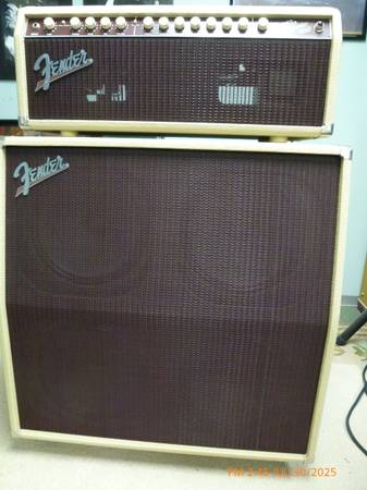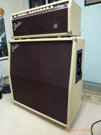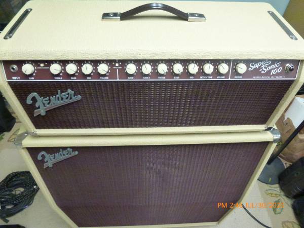 I'm selling my Fender Supersonic 100 watt Head and its 4 x 12 speaker cabinet. Both Head and cabinet are in absolute Mint condition, having been used only a hand full of times for limited rehearsal, and have never been outside of my studio for club, road gigs, etc. performances. There are no knicks, dents, blemishes, tears, nor damage at all to this beautiful set of gear. Head is in excellent operating condition nearly brand new.