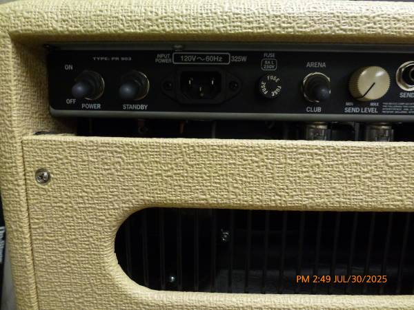 Burn channel has overdrive flavors: post gain EQ and two-stage cascading preamp controls, tube driven long spring Reverb, FX loop with level control, Notch tune, Automatic Bias, a Damping control, also: includes Black Head cover and 4 button metal foot switch, and power cord. Head has the switching option for 100 watts or 25 watts performance output.