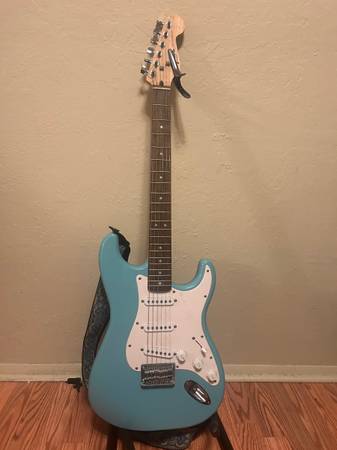 Lightly used electric guitar for sale. No dents, scratches, or marks. Perfect condition. Includes capo and guitar strap. I'll also add in the Fender amp for $50. Message with best offer as I'm just...