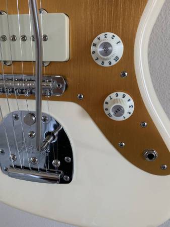 Squier J Mascis Jazzmaster upgraded with all-American original Fender parts and professional set-up. This will come with the original parts and all modifications can be reversed to it's original condition with ease.