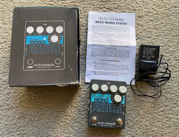 For sale is an EHX (electro harmonix) bass mono synth guitar effects pedal. It includes the original box, manual, pedal, and EHX-branded power adapter.