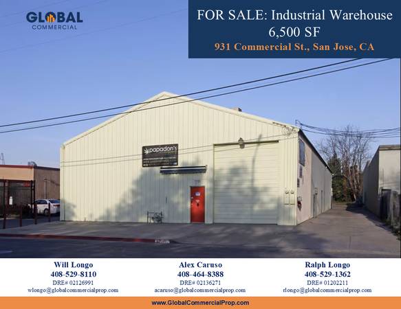 San Jose Industrial Warehouse for SALE: 6,500 SF - office &...
