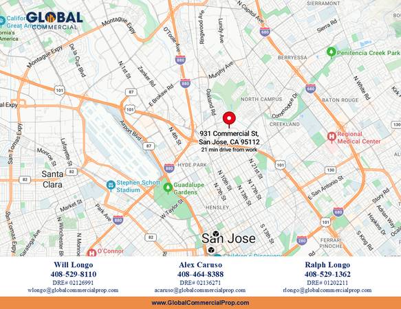 +/- 6,500 SF Warehouse Building Fenced Yard - Allows Excess Onsite Storage Signage Clear Height 20’ – 22’ 2 Roll Up Doors w/Drive Through Access Easy 101 / 880 Fwy Access Zoning: M4 APN: 241-11-001...