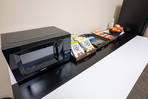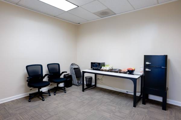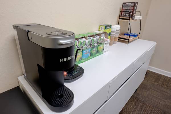 All 3 large conference tables are wired for outlets including USB plugins. The space also includes WIFI which is already set up and running. The coffee station and kitchen include 2 mini fridges, one for beverages and one for food, coffee and tea makers, microwave and kitchen supplies.