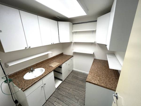 End cap unit, full height glass storefront, double glass entrance doors, drop t-bar ceiling 10’ AFF (above finish floor), 2’ x 4’ fluorescent lights, open retail area, laminate flooring throughout, contact room, 2 exam rooms (1 with sink), 1 office, 1 ADA restroom, storage room (former ADA restroom can be converted back) separate HVAC, separate electrical (200 Amp; 3 PH; 4W; 208/120V) and private exit door to parking lot. Available Now.