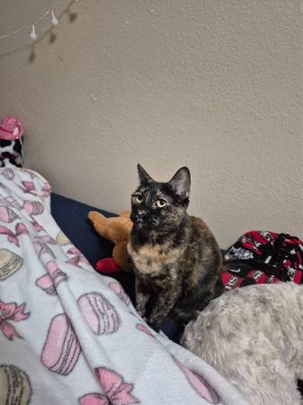 Beautiful baby Maple needs a new home. Very super affectionate and sweet. Has been an indoor cat since a baby. She's spayed and up to date on vaccines. Likes to be around people. Sleeps in my daughters room. Likes to go into a gated section where she gets fresh air and sometimes sun too. Goes through a doogy door in and out. Comes work a rehoming fee