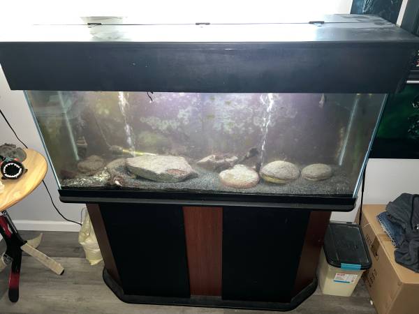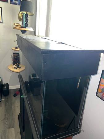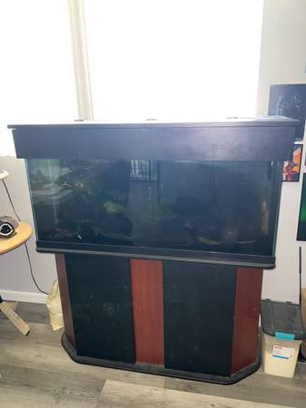 55 gallon tank with stand and custom black canopy. The stand has two cabinets and plenty of space underneath. No lights or filter included. Asking $150 OBO Aquarium fish tank aquatic tetra aqueon...