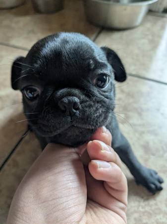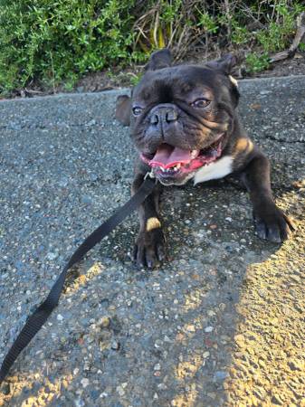 PLEASE ONLY CALLS AND TEXT MESSAGES. Female puppy born September 26th Father is a French Bulldog. Mother is a Pug. Rehoming fee applies. $300 Located in San Jose, California. Thank you.