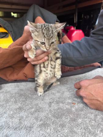 Please let me know if you are interested! We are asking for a donation fee of $150-$200 each. They all are purebred tabby kittens (part Bengal tabby (father)). They are very cute, unique, friendly, litter box trained, healthy and ready to go.
