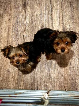 I have a three months old male pure-bred dad who is a t-cup mom who is a mid size potty trained tail-docked full grown from 6-8 lbs.