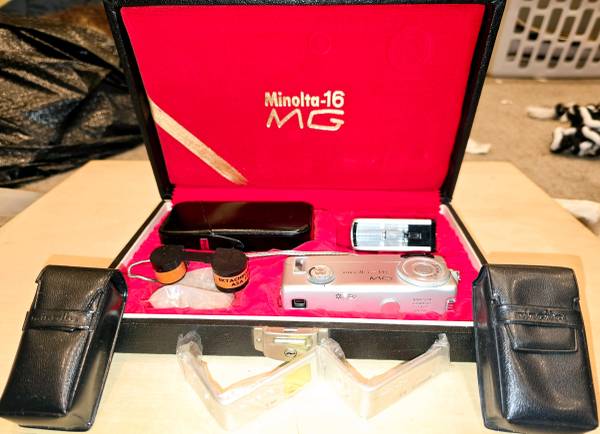 Outstanding / Pristine / LIKE NEW Minolta - 16 MG / 16mm Miniature Spy Camera Kit. 1960'S 16mm Sub-Miniature / Spy Cam Just Like James Bond 007. Perfect Looking & Working Original Condition....