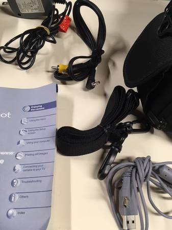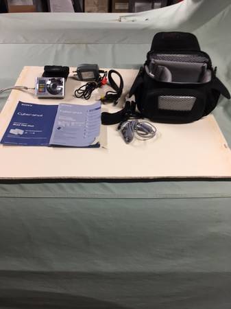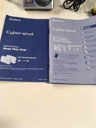 Sony Cyber-shot DSC-W30 6.0 megapixel camera with accessories. The battery charger is also included but not shown in the pictures.