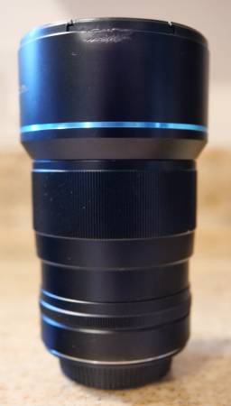 There is a small issue with the lens: A very small 1" portion of the aluminum housing has a small dent. This dent to the aluminum housing is located at the very front portion of the lens barrel, where lens filters are normally screwed into place. The dent affects about a 20-degree arc of the barrel (out of a total of 360-degrees), so it is very small. The dent was created when I placed the lens in a crowded camera bag and another metal object pushed up against this aluminum section. The lens was NOT dropped. The dent does NOT affect any glass elements. The dent is limited to the aluminum housing. Please see the top of Picture 10, and the left side of Pictures 11 and 12 for a visual understanding of this dent. Pictures 13 and 14 show a closeup of the dent, which measures less than 1" long and 0.25" tall.