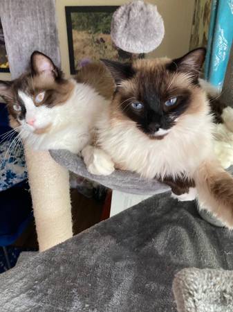 Hello i am giving away my two cats they are ragdolls and they are very calm cats. They really love to stay at home nost of the time.