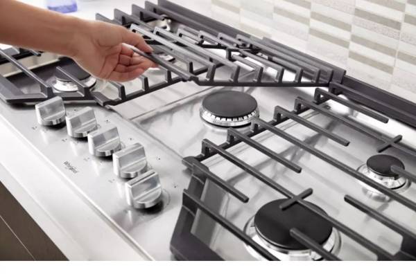 Whirlpool's 36 inch EZ-2-Lift™ Hinged gas cooktop features continuous cast-iron grates for easy movement of pots and pans across the cooktop. The SpeedHeat™ Burner feature technology for rapid boiling, searing and frying, and the left front burner was specially designed with a 5,000-BTU AccuSimmer temperature-controlled feature for gentle heat on sauces and soups. There is also a griddle included to make pancakes, vegetables, and a bevy of other foods. Its SpillGuard accent contains spills for quick clean-up, and cleaning is even that much easier with the hinged dishwasher-safe grates and knobs.