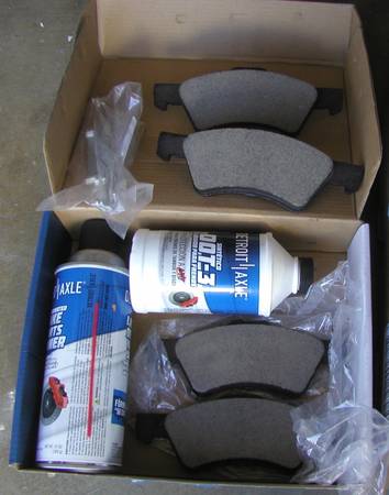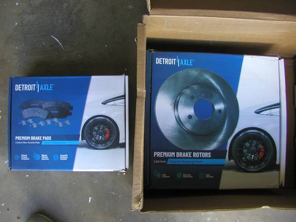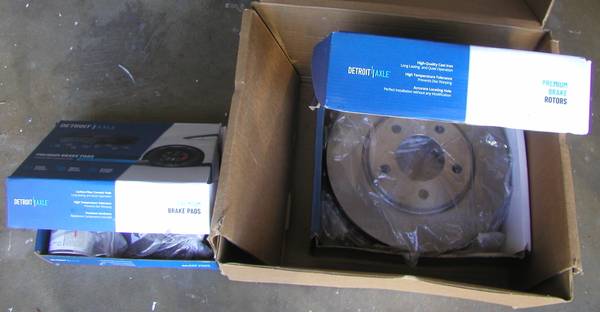 For Sale: A brand new Front Brakes Kit of rotors and pads for various 2001 -2007 Dodge Caravan, Dodge Grand Caravan, or Chrystler Town and Country. These Detroit Axle brand rotors and pads only fit on cars that are equipped with disc brakes on all four wheels. They are not compatible with models that have drum brakes on the rear wheels. (For full list of compatible vehicles see last paragraph for link to Detroit Axle web page.)