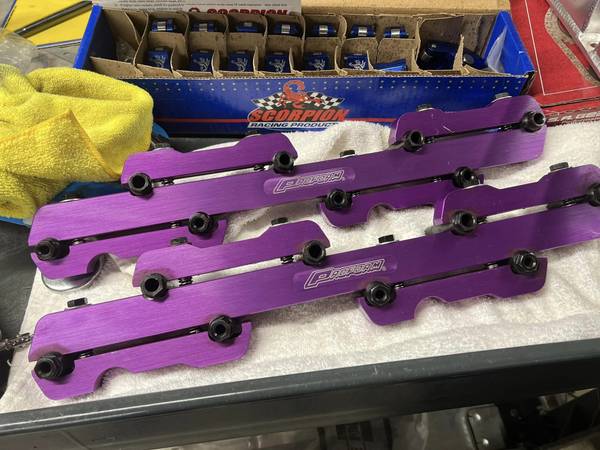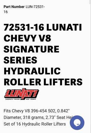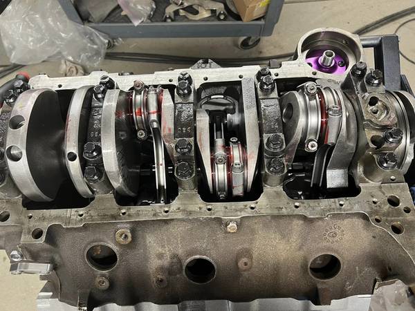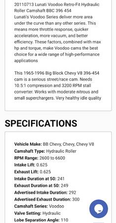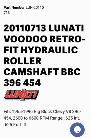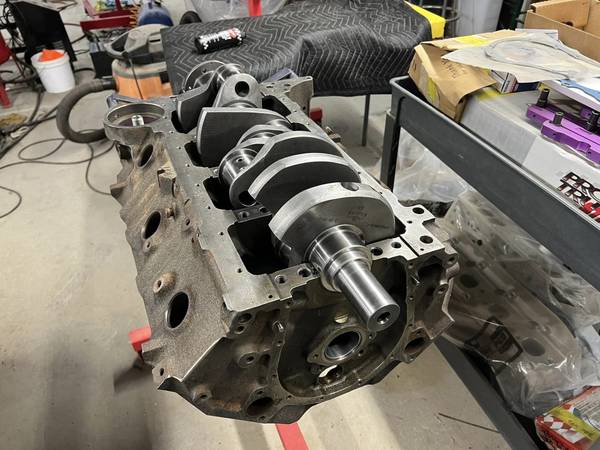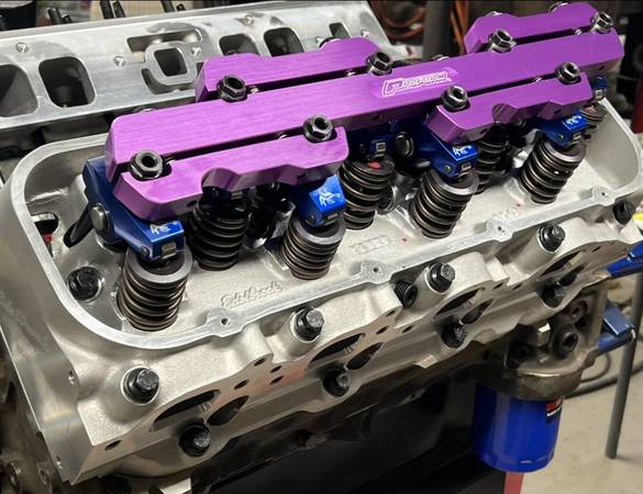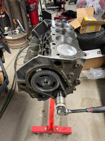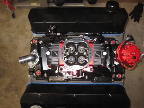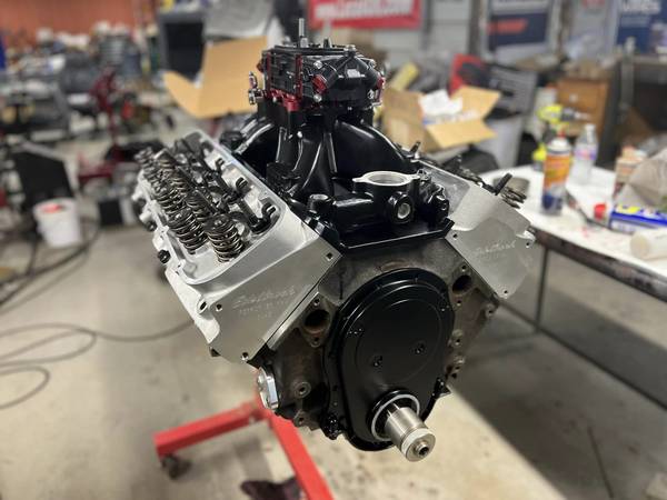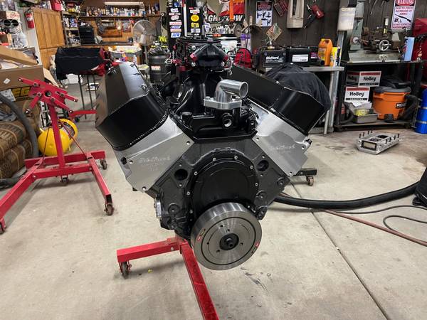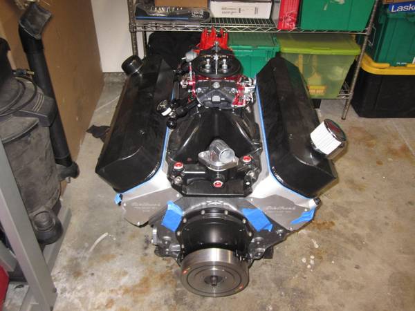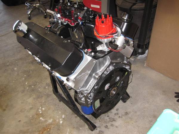 Bulit Big Block Chevy 496 454 stroked to a 496 4 bolt mains. Bottom end is all forged internals, Eagle crank Manley rods and Wiseco pistons. Top end has Edelbrock Performer RPM Heads LunatI hydraulic roller cam Scorpion roller rockers Proform stud girdles Edelbrock Victor Jr Intake and a Brawler 850 carb. Motor is pump gas with a 10.8 to 1 compression. Arp Hardware throughout, Msd Ignition Distributor. Mini Starter Motor is all been balanced. HP Estimated at 650+ Has Pro Street Dampner and SFI approved Flexplate.