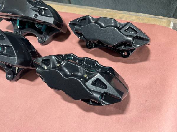 Set of 4- 4 piston front and rear brembo calipers for Camaro or corvette or any other custom project Powder coated dark gunmetal and clear coated ready for install BMW track Supra volk rays gtr bbk...
