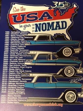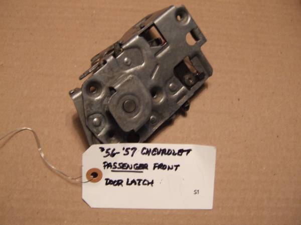 55-57 Nomad-Safari lift gate torsion bars $45 pair. 1957 Chevrolet ash tray and glove box door $40 for the pair. Rt. front door latch for 56-57 Chevy $35. Rt. rear door latch for 56-57 Chevy $30. Upholstery cleaner $5 each. Each bottle will make 16 gallons of cleaner. Chevrolet Nomad Club metal sign 12"x16" $10.