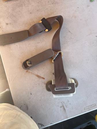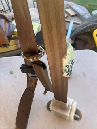 Seat belt out of a 1996. Has damage but can be repaired. $30.00. Comes with all mounting bolts.