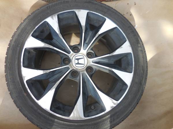 $225 RIM NO CENTER CAP. LEAVE PHONE NUMBER ONE WHEEL $225 17 x 7 inch rim 5 X 114.3 mm Offset 45 mm Center Bore 64.1 mm Machined w/ Black 215 45 17 tire